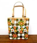 ヴィンテージファブリックのレトロなトートバッグ [花柄チェック]