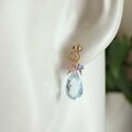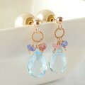 澄んだ青空のような美しいスカイブルートパーズをタンザナイト、ピンクトルマリンと組み合わせた華奢なピアスに仕上げました。