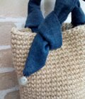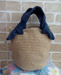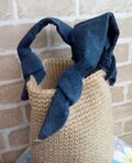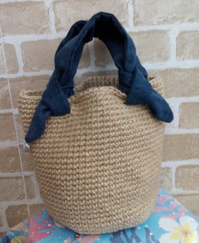 麻ひもで編んだシンプルなバックです。持ち手をデニムにしました。