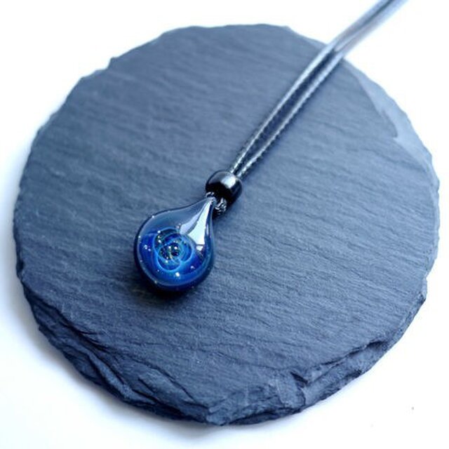 ガラスの中にシルバーの粒を散りばめ、星屑を表現した一点モノのネックレスとなっております。