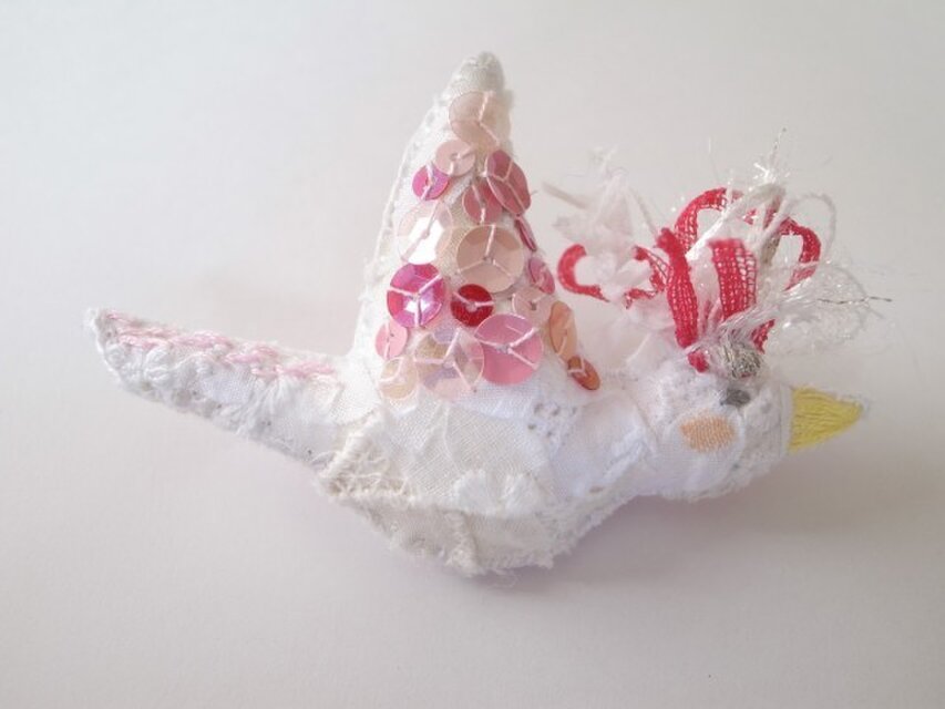 小鳥のブローチ ピンクスパンコール よこ
