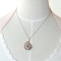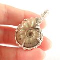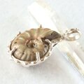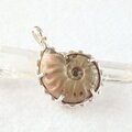 光の当たる角度によってオーロラのような輝きが浮かぶアンモナイトの個性的デザインペンダントです。