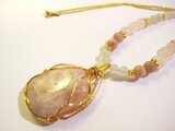 淡い美しい色合いのペタライトのタンブルをゴールドのワイヤーで巻いて、ネックレスにしました。