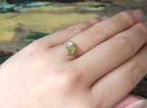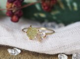 原石のグリーンガーネットとダイヤモンドクォーツのリング w334