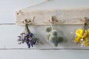 自家製ドライフラワーを古材風に加工した板にセットしました。