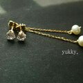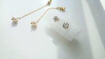 14Kgfのポストに最上級のCZクリアAAAAA4mmを一粒、淡水真珠のホワイトカラーをぶらさげたキャッチで、2wayでお使い頂けるピアスです。(*´∀`)