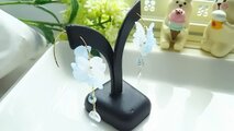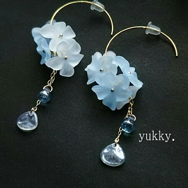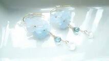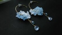 爽やかなブルーとホワイトのフラワーで、華やかなピアスを作りました。(*^-^*)
