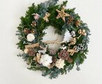 プリザーブドフラワーヒムロスギ木の実の華やかなクリスマスリース