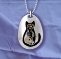 機械式腕時計のパーツを猫のシルエットに合せレイアウトし、ペンダントに仕上げました。