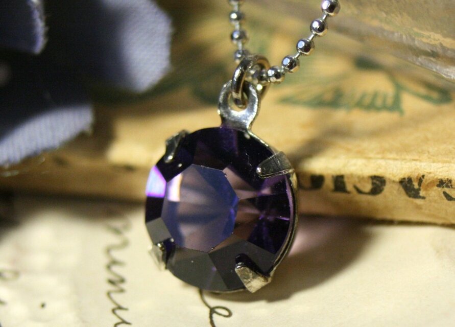 【1点もの】大粒10㎜ ヴィンテージスワロフスキーペンダント パープル