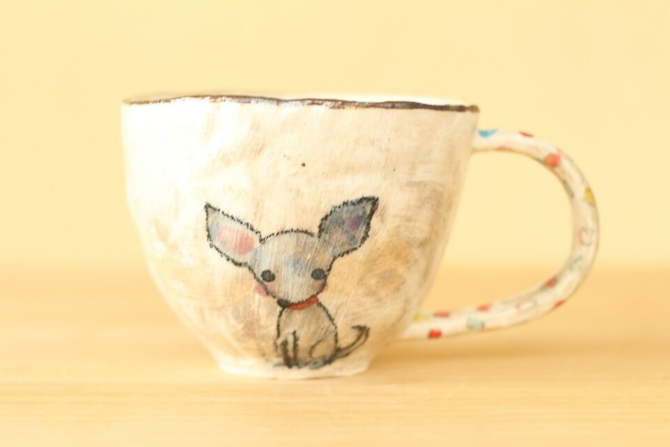 粉引き手びねりミニチュアピンシャーのカップ。