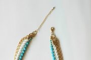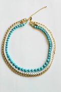 白いツイストコードと存在感たっぷりのゴールドチェーンを