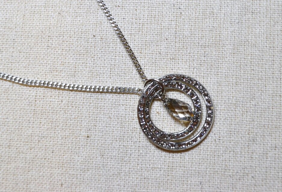 スワロフスキーが埋め込まれたリングにしずく型のカットガラスを