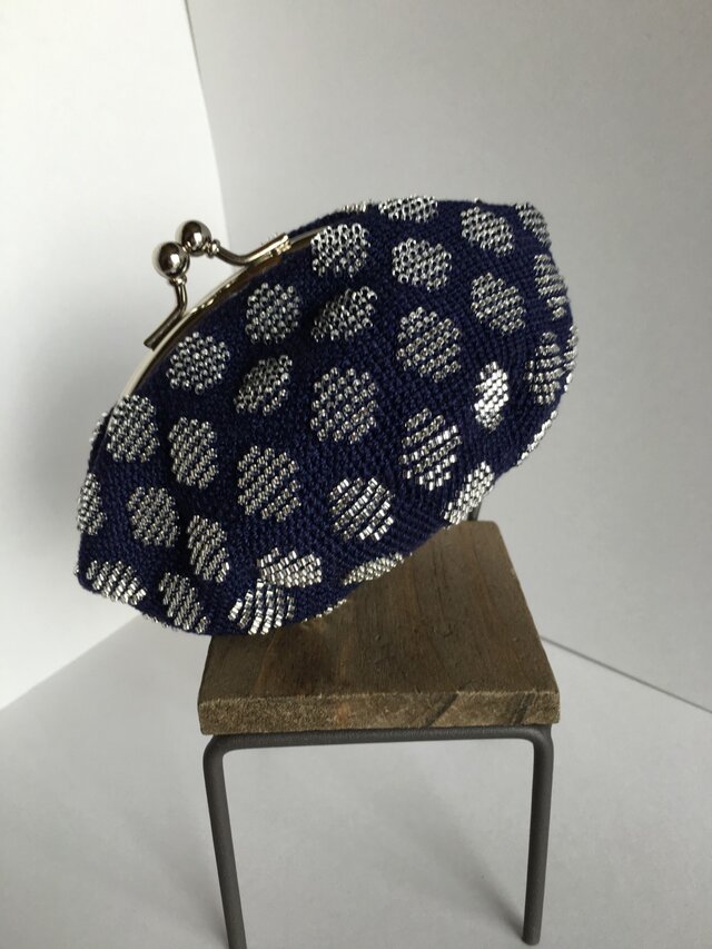 紺色の糸にシルバーのビーズをドット柄に編み込みました。