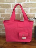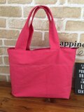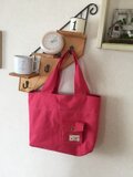 ▽持ち手は長さ40cmで肩に掛けられ、幅4cmですが、真ん中で2つ折りにしているので持ちやすくなっています。