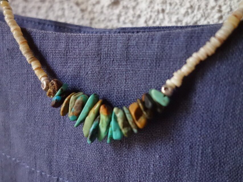 ALINOMAMAのターコイズの中から細長いラフな形のビーズを選んで