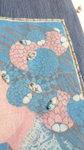イラストの世界観に合わせ、表面の生地にはハイクオリティーの岡山デニムとインテリアファブリックを使用し、バイカラーな印象に。