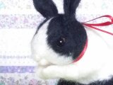 羊毛うさぎM*ダッチブラック*立ち耳*毛づくろい(お祈り)