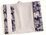 リバティの人気生地、ヨシエ Yoshie (ネイビー)とハーフリネンの生地で新書本サイズのブックカバーを作りました。