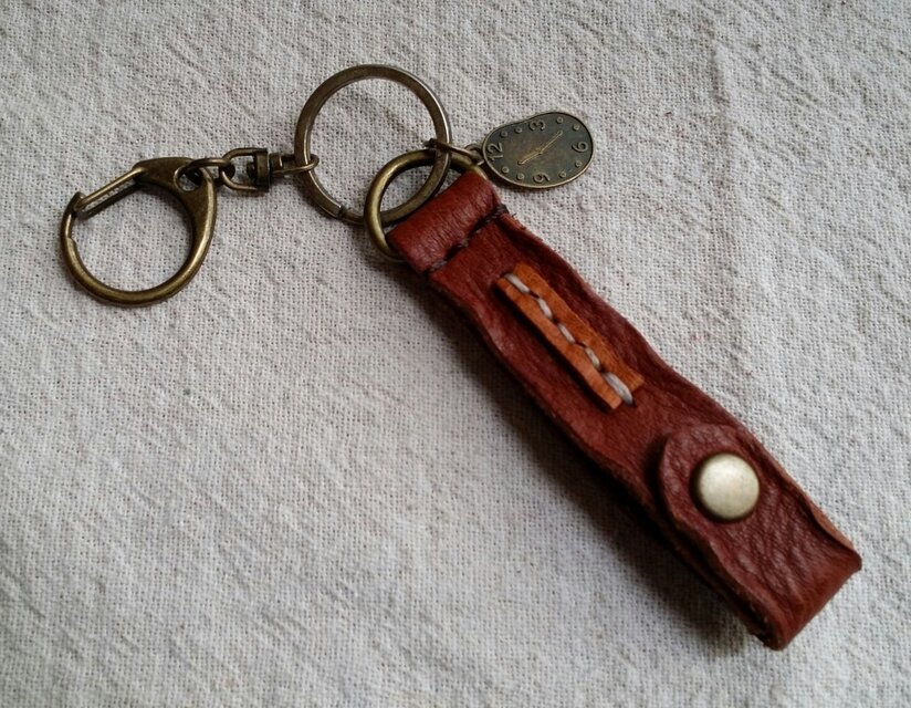 チョコブラウンのしっかりとした革でキーホルダーを作りました。