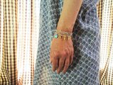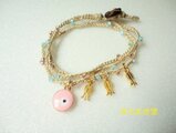 各種ビーズを編み込んでおり、腕に3重に巻き付けてご使用頂けるよう作っています。