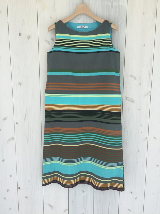 マルチボーダーが、スポーティーな感じもしますが、色合いがとってもお洒落な生地です。