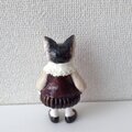石粉粘土で成形し 乾燥後 水彩絵の具で彩色し ニスを塗ります。