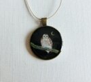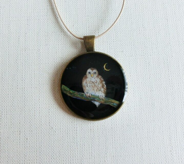 ふくろうを描いたオリジナルイラスト(原画)を樹脂でとじこめました。