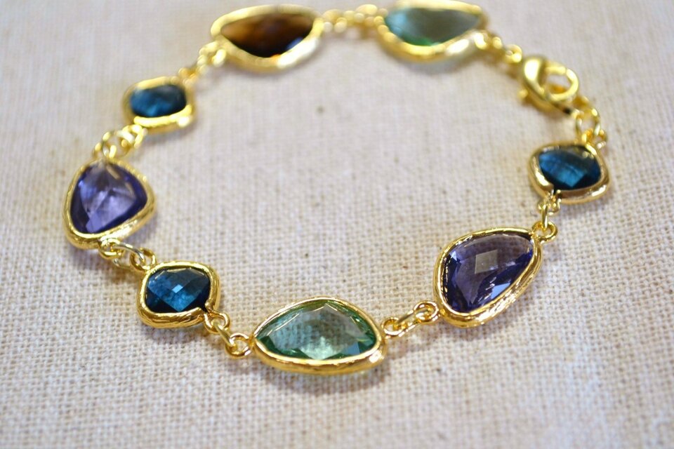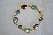 ガラスビーズに金属のフレームをつけたシャネルストーンを繋げた