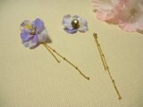 パンジーのアーティシャルフラワーをピアスにしました。