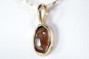 10kゴールド製のペンダントです。縦長オーバルの形と深みのある赤色、
