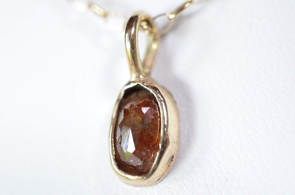 ローズカット・ダイヤモンド(天然レッドカラー)10kゴールドペンダント