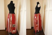 深い赤色系ギャザーマキシとっても素敵。赤系マルチカラーティアードマキシと見比べどっちもも可愛い~可愛い~と連呼、うっとりしています。お作りがとても丁寧で美しく、パーツ生地の並びも最も濃い色(黒地に花柄等)が良い間隔で分散配置されていて素晴らしい。平太ゴムの具合もちょうど良い自然な乗っかり感。年配者なのですがおすすめの作品です。迷われている方はぜひご注文を、と思います。 ありがとうございました!