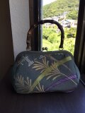 とても素敵な、ススキでしょうか、刺繍柄の袋帯のがま口手提げです。