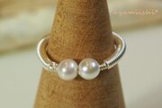 小さなヴィンテージパールを2つくっつけて、ワイヤーでピンキーリングを作りました。