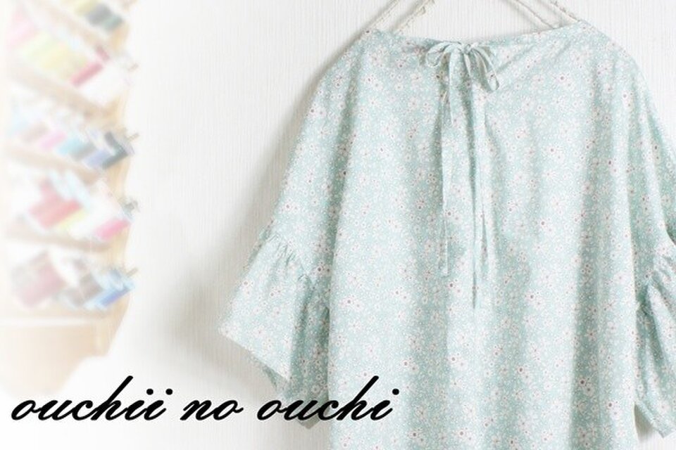 リバティタナローン大人気柄 Maddsie(マッジー)palegreen系でギャザースリーブのフレンチブラウスを作りました。