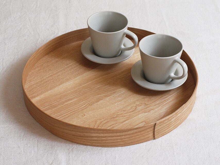 タモ材・ニレ材で製作しました、曲木のトレイ(お盆)です。