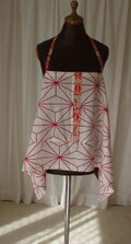 長方形の布がベストに変身 ポケットの布はお召し(絹)口布は古布でモスリン(毛)です。大胆な麻の葉の柄をお楽しみください。
