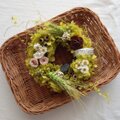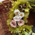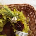 ライトグリーンのアジサイと小麦や花々を使用したプリザーブドフラワーのリースです。