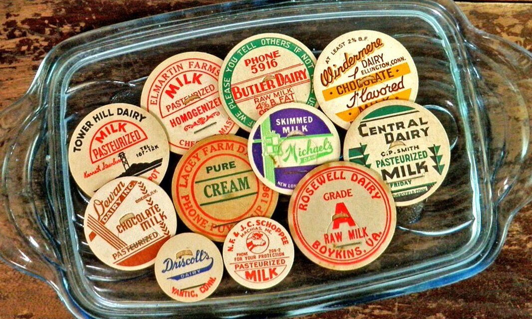 アメリカのヴィンテージ、ミルクキャップです。異なる絵柄を1枚ずつの11枚セットにしました。こちらのセットは、時を経て紙色が程よい感じにセピアカラーになったものを集めたセットです。 すべて未使用品ですが、ホチキス針の錆びなどが見られるものもあります。特に右下の「ROSEWELL DAISY」は経年にる変色がありますが、ヴィンテージならではの風合いとしてお楽しみいただけましたら幸いです。