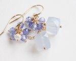 【14kgf】キューブカットカルセドニー&タンザナイトピアス