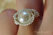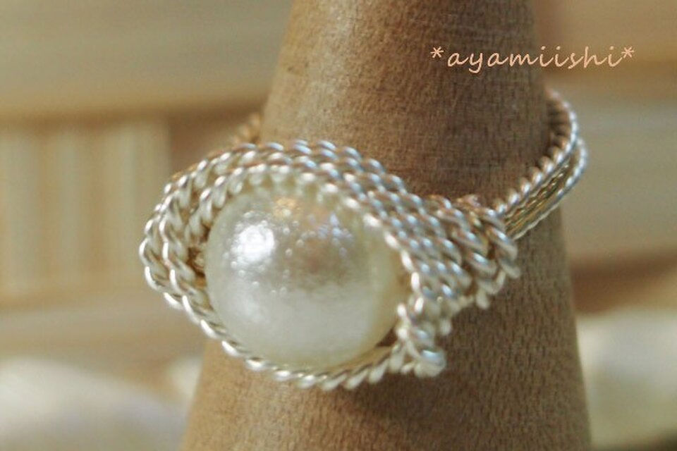 エアパールをワイヤーで巻いてリングを作りました。