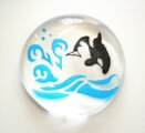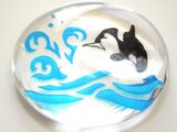 箸置き用のガラスの裏面にジャンプをするシャチを彫り込みました。