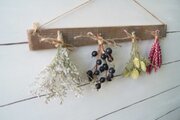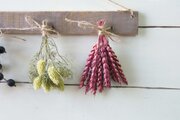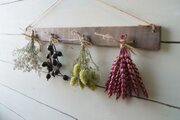 自家製ドライフラワーを古材風に加工した板にセットしました。