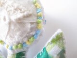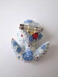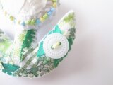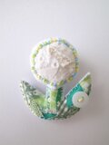 材料:綿のハギレ布・フェルト・わた・刺繍糸・ボタン・ブローチピン