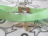 パステルピンクとホワイトと、ブルーのリボンにレース、かわいいのオンパレードの中に、骸骨という毒がよく効いて本当に素敵です♪ 写真で見てまさに一目惚れでしたが、実物はもっともっと素敵でした!購入して本当に良かったです。ありがとうございました♪