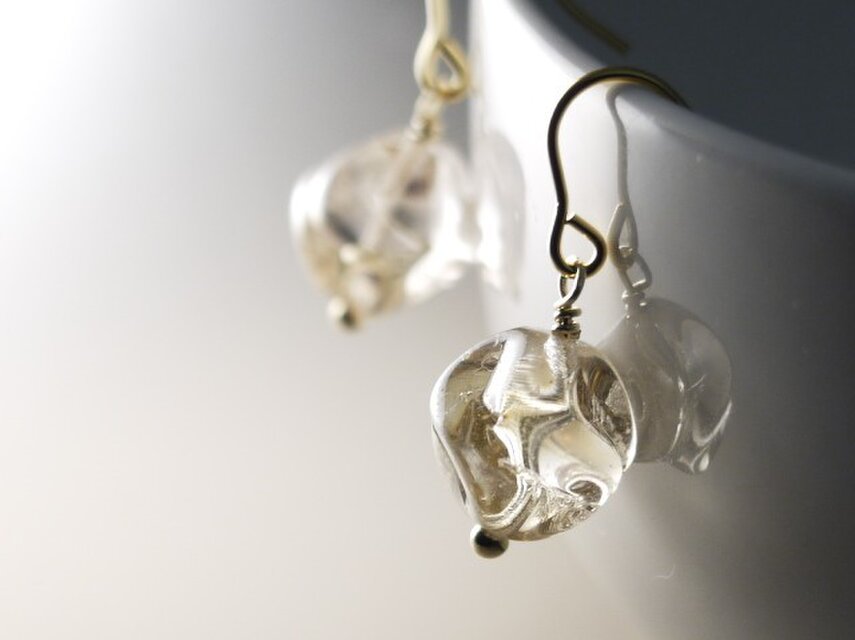 手捏ねみたいなチェコビーズのピアス クリスタル