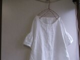 上質なオフホワイトリネンでパフ袖ブラウスを