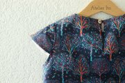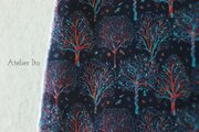 生地は木が並んだ柄なのですが、よく見ると絵の具や筆などが木に成っている、とても夢のあるファブリックです。