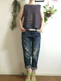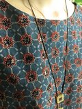 ツォモリリで購入した、インド グジャラート州 カッチ地方、アジュラック村の藍や茜などの植物染料を使った染めとブロックプリントを施した生地を使用して、ブラウスを作りました。